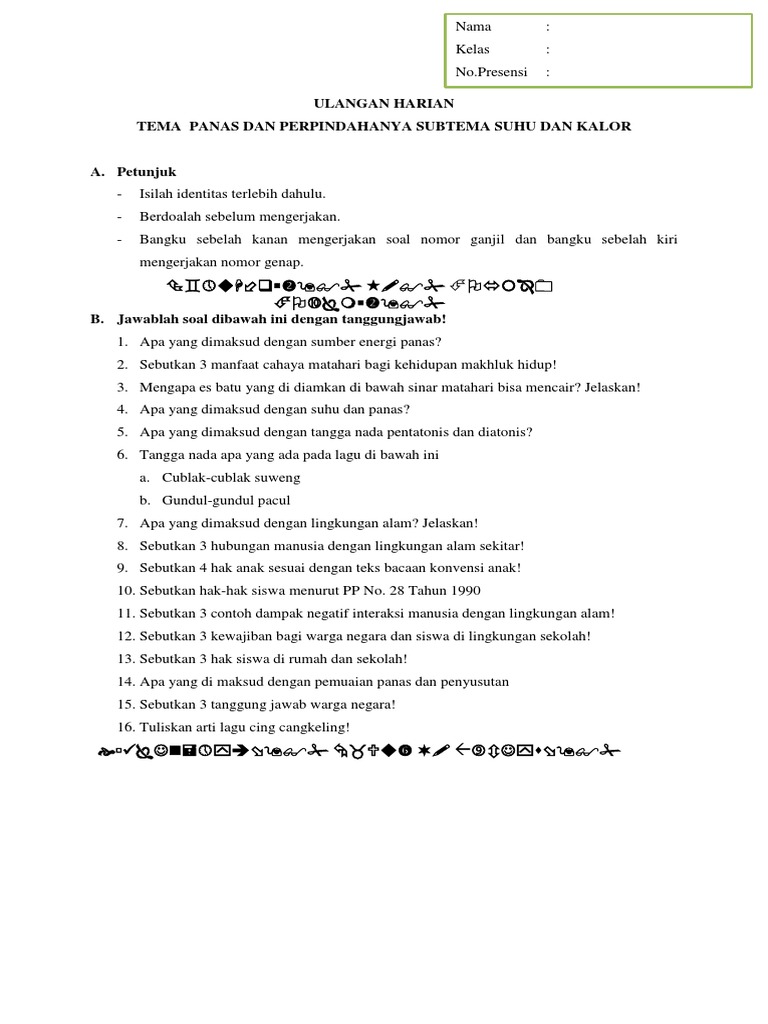 Ulangan Harian Kelas 5 Tema 6 Subtema 1 Edisi Revisi 2017