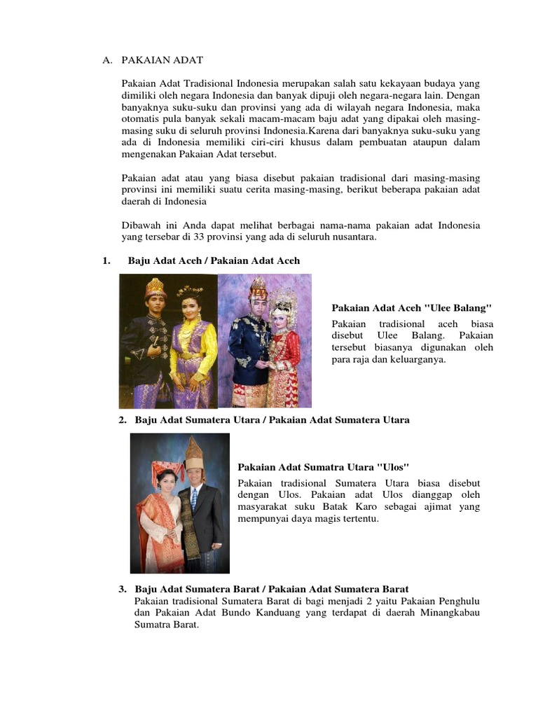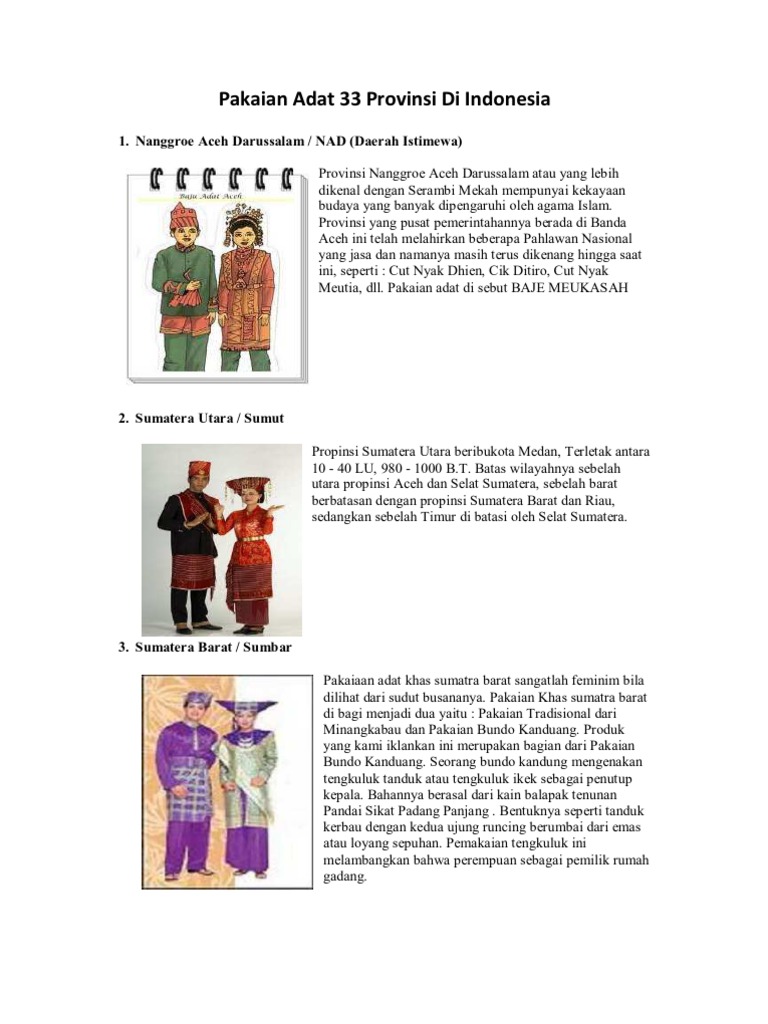 Pakaian Adat 33 Provinsi Di Indonesia Pdf Document
