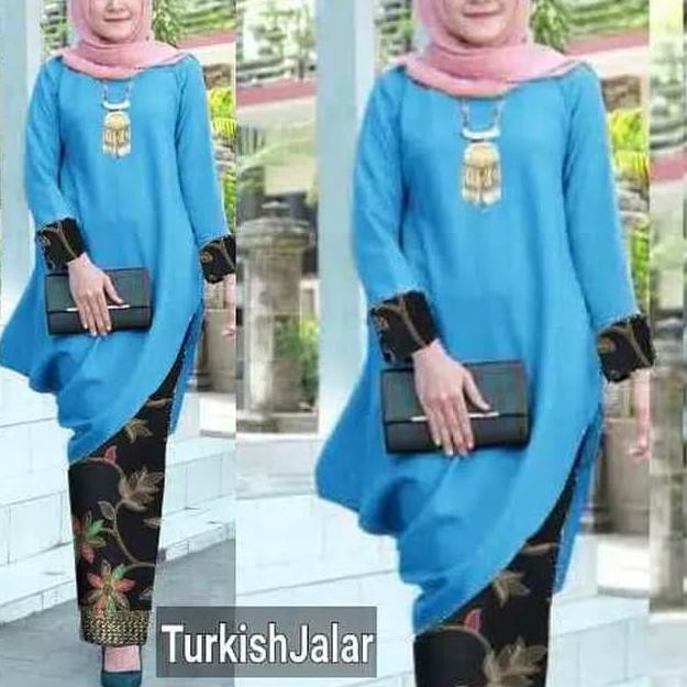 G Mustika Baju Setelan 2in1 Blouse Rok Lilit Batik Muslim Hijab