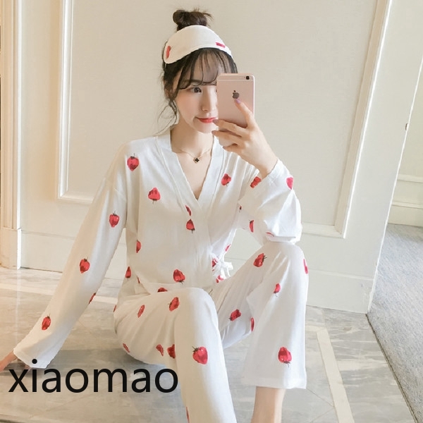 Set 2pcs Baju Piyama Casual Wanita Model Kimono Dengan Kerah V