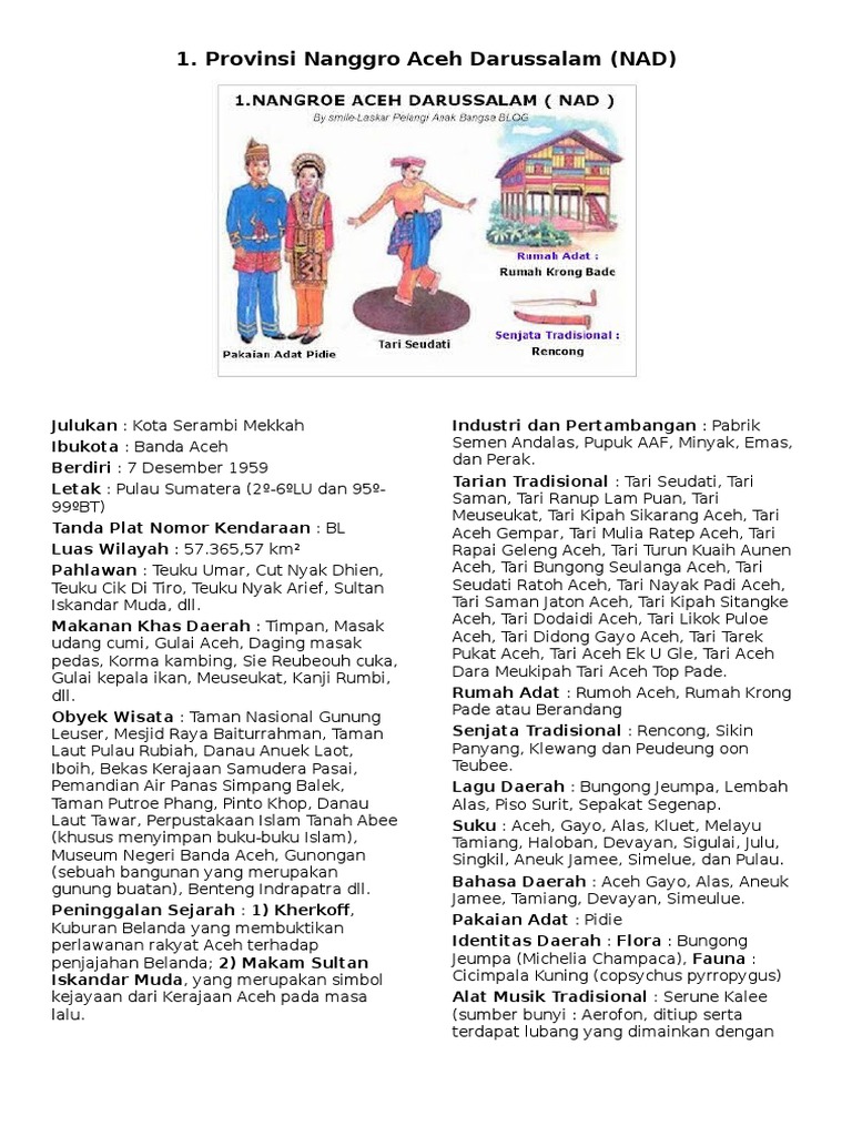 Tugas Cari 34 Provinsi Di Indonesia Beserta Pakaian