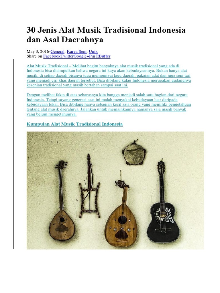30 Jenis Alat Musik Tradisional Indonesia Dan Asal Daerahnya