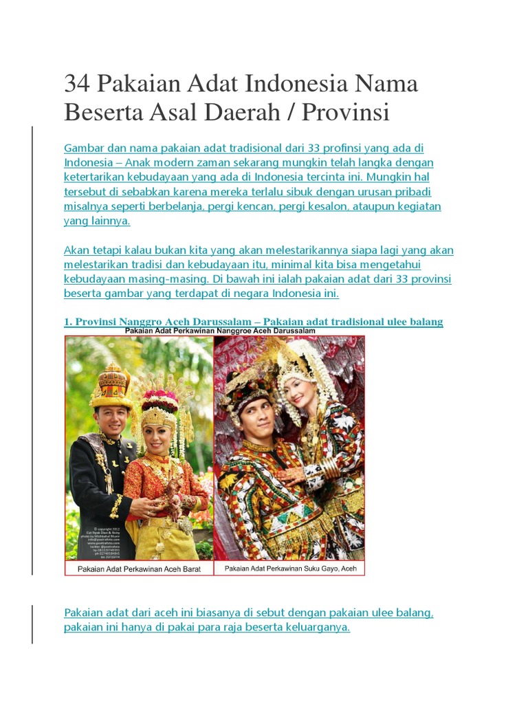 34 Pakaian Adat Nama Dan Asal Provinsi Di Indonesia Gambar