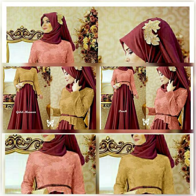 Jual Maxi Alma Maroon Gaun Pesta Muslimah Terbaru Gamis Brukat