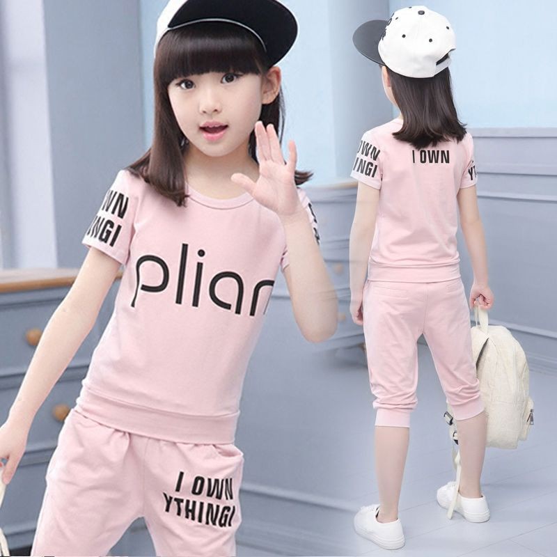 Set Pakaian Anak Perempuan Lengan Pendek Dan Celana Panjang Gaya
