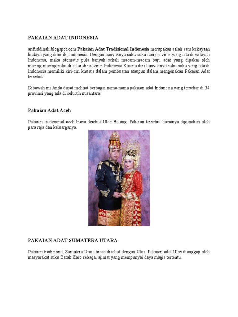 Kliping Nama Pakaian Adat Daerah 34 Provinsi Di Indonesia Ralapedia