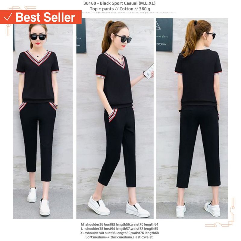 Kasual Casual Fashion Pakaian Wanita Remaja Murah Black Sport