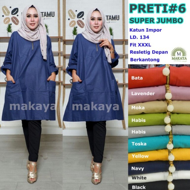Baju Wanita Blouse Tunik Preti 6 Jumbo Muslim Modern Modis Trendi