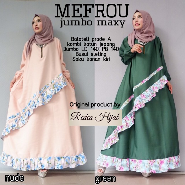 Baju Wanita Gamis Mefrou Jumbo Maxy Muslim Trendi Lucu Modern