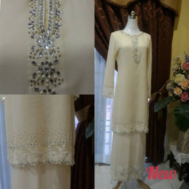Set Baju Pengantin Warna Krim Gold Lace Weddings Baju Nikah