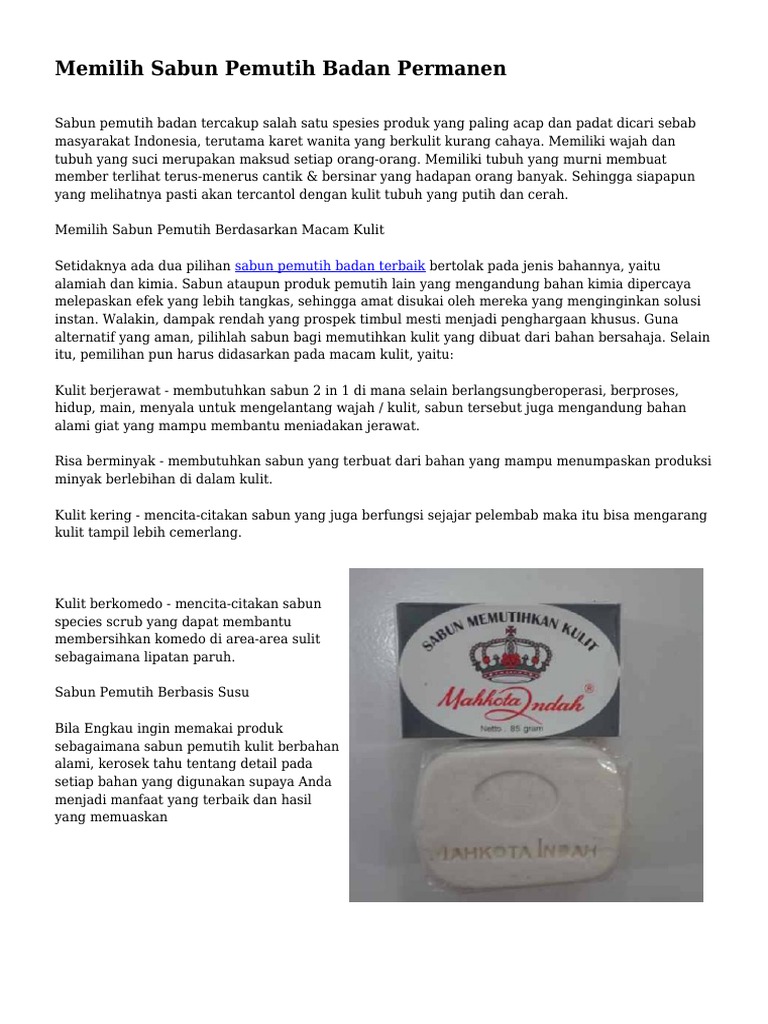 Sabun Pemutih Badan Mahkota Indah Putihkan Kulit Secara Efektif2020