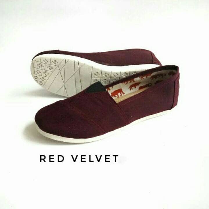 Fashion Sepatu Red Velvet Slip On Mirip Wakai Toms Vans Cewek