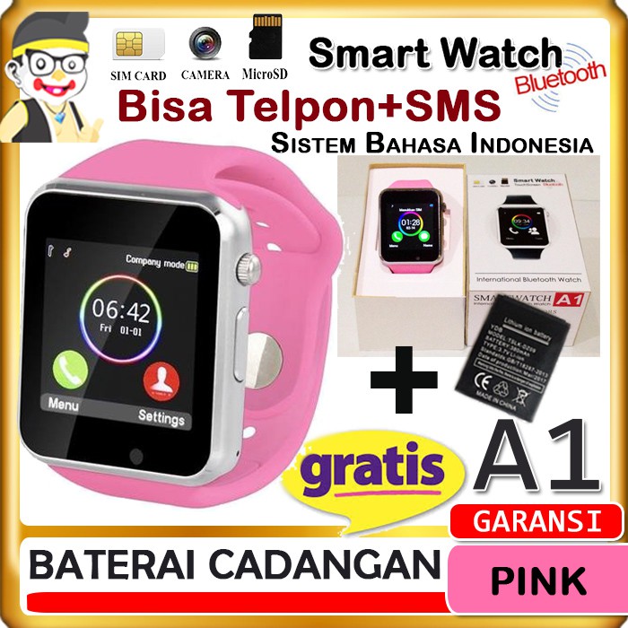 Smartwatch A1 Jam Pintar A1 Jam Tangan Pintar Warna Pink Murah