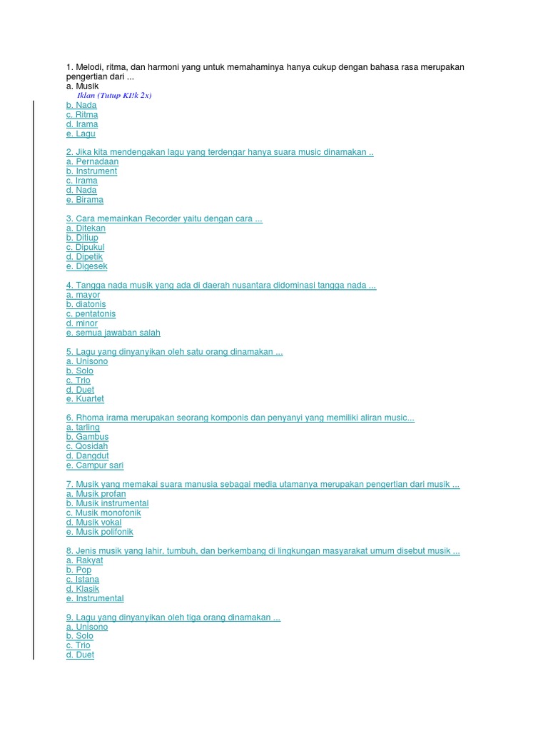 Soal Dan Kunci Jawaban Usbn Seni Budaya Kurikulum 2013 Tahun