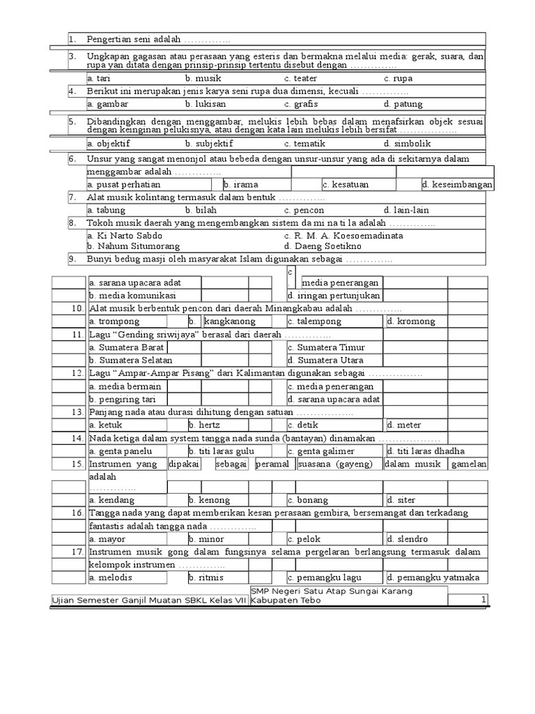 Soal Sbkl Kelas Vii I Dadangjsn
