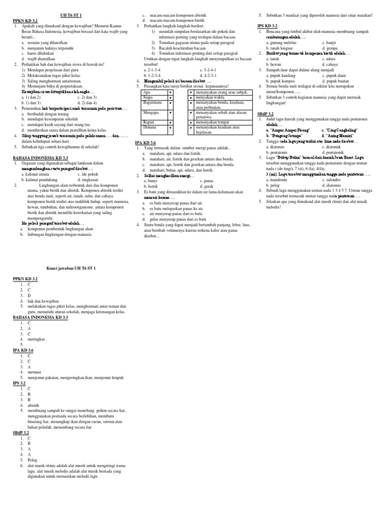 Soal Uas Pas K13 Kelas 6 Semester 1 Tema 3 Sbdp Juragan Les