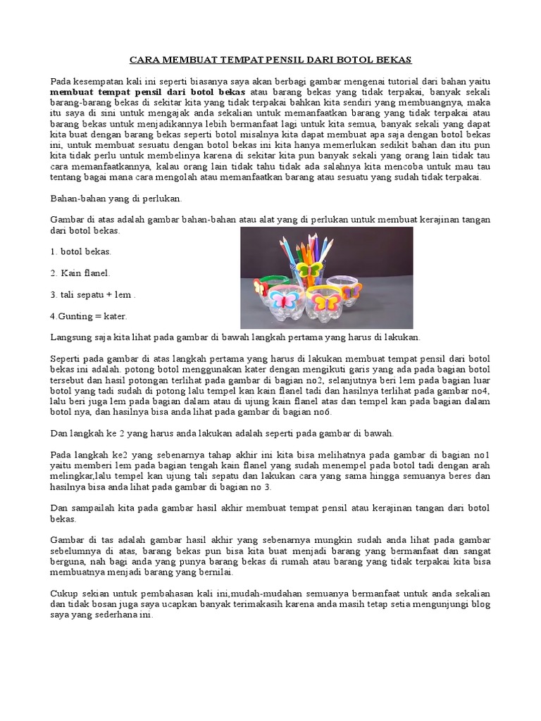 Cara Membuat Kerajinan Tangan Dari Barang Atau Botol Bekas Docx
