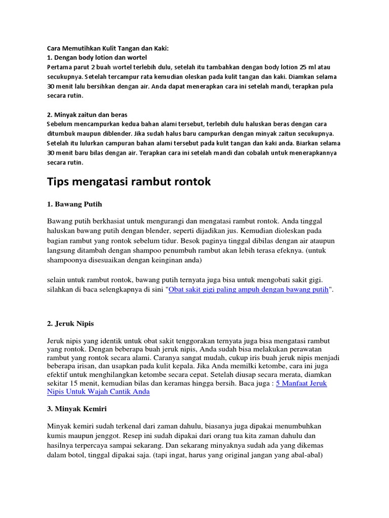 Cara Memutihkan Kulit Tangan Kaki Dan Badan Dengan Cepat Dan