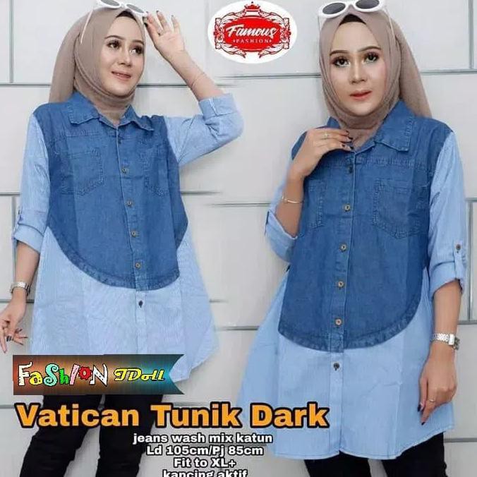 Trend 2020 Baju Atasan Wanita Tunik Kombinasi Jeans Kemeja Cewek
